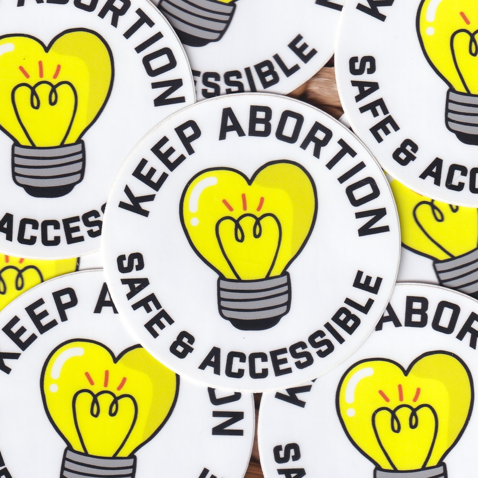 The “Keep Abortion Safe and Accessible” sticker is a bright and bold reminder that abortion is healthcare, and everyone deserves access to it without fear, shame, or barriers. Featuring a yellow heart-shaped light bulb, this design symbolizes compassion, clarity, and the power of informed choice—because reproductive freedom shines brightest when we protect access for all.